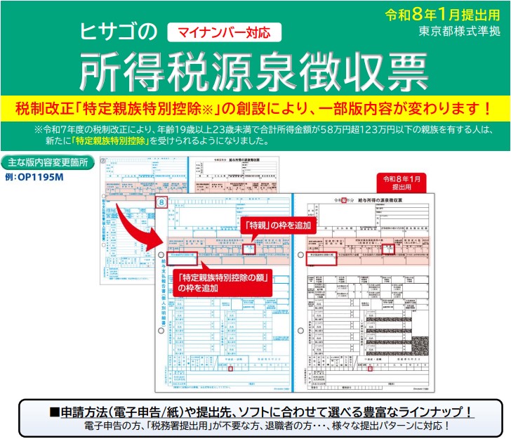 今回は、皆様のバックオフィス業務をサポートする重要な情報として、令和7年度税制改正に完全対応したヒサゴの「給与所得の源泉徴収票(令和8年1月提出用)」をご紹介します。