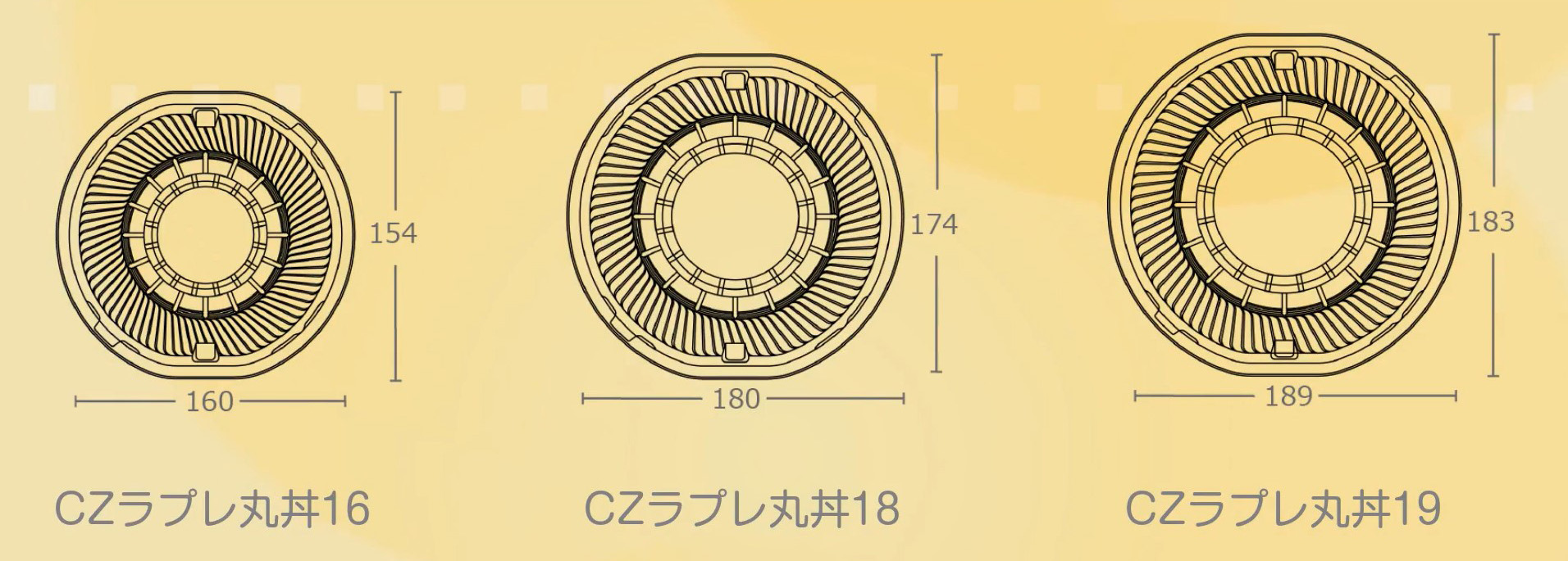 | CZラプレ丸丼18 | 180×174×45 | 約250g | 本体購入 | 蓋購入 |