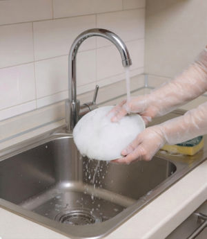 深い容器の洗浄や食品加工にはロングタイプの手袋が最適です。 なぜなら、通常の手袋では防げない「二の腕までの汚れや水濡れ」を完全にカバーできるからです。