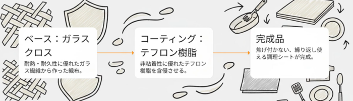 ガラス繊維にテフロン(フッ素)樹脂を染み込ませた、非常にタフで高性能なオーブン用シートです 。