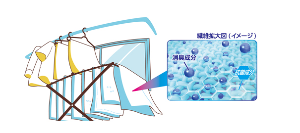 今回の改良により、独自の消臭成分と進化した抗菌性能がさらに強化され、干している時から使っている時まで高い消臭効果が持続する製品へと生まれ変わりました。