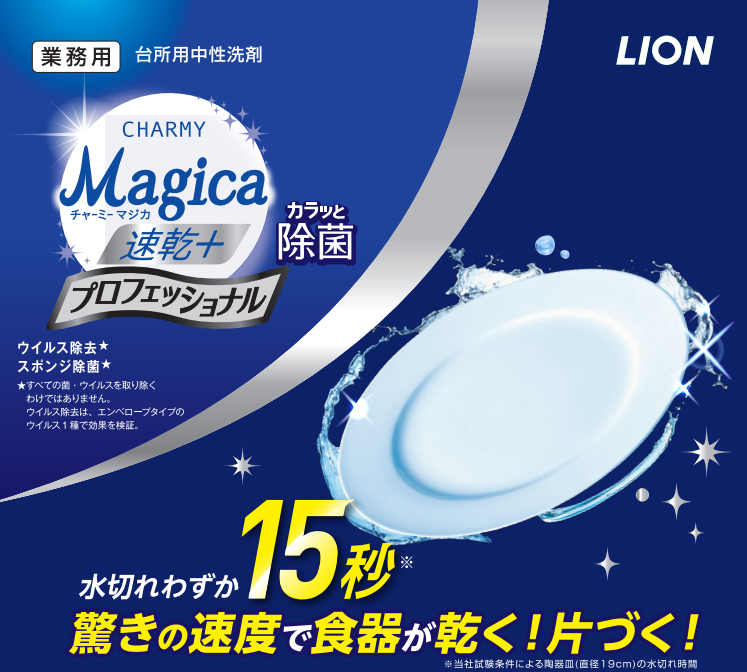 食品資材の卸業者様が売上を伸ばすためには、現場の「人手不足」や「衛生管理」という切実な悩みを解決する、最新の商材提案が不可欠です。今回は、洗浄後の作業時間を劇的に短縮する新商品「業務用 CHARMY Magica 速乾+ カラッと除菌 プロフェッショナル」をご紹介します。