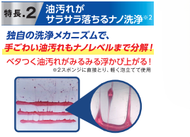 • 油汚れをサラサラと落とす基本性能に加え、スポンジの除菌や、まな板・調理器具の「ウイルス除去」までこの一品で対応しています。