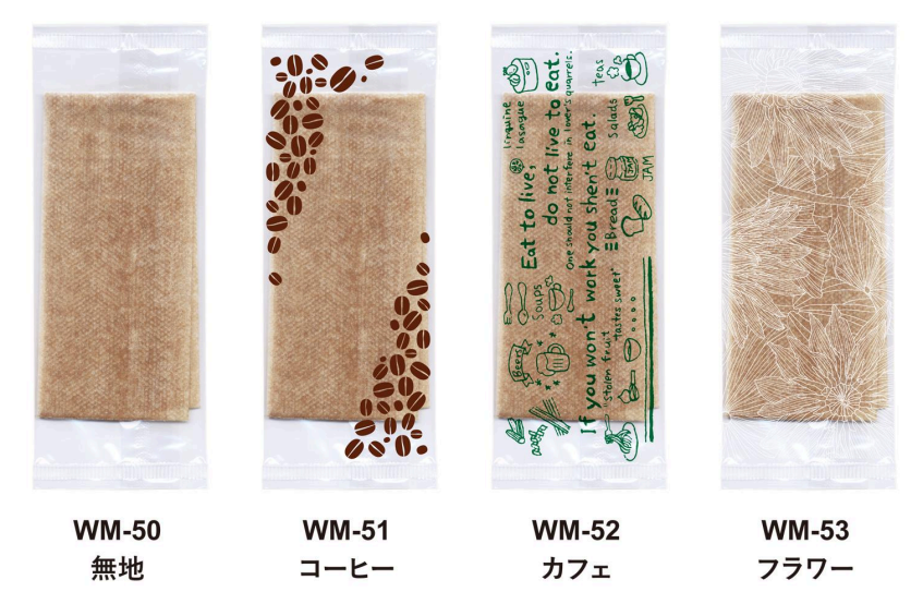 無地(WM-50)のほか、コーヒー(WM-51)、カフェ(WM-52)、フラワー(WM-53)の計4種類のバリエーションを展開しています。