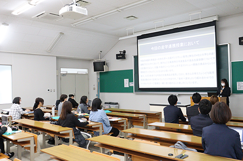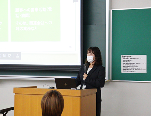 鈴鹿大学短期大学部のキャンパスにて、食物栄養学専攻の学生17名を対象としたキックオフ授業を開催しました。学生たちは、業界を代表する企業から直接話を聞ける貴重な機会に、熱心に耳を傾けていました。
